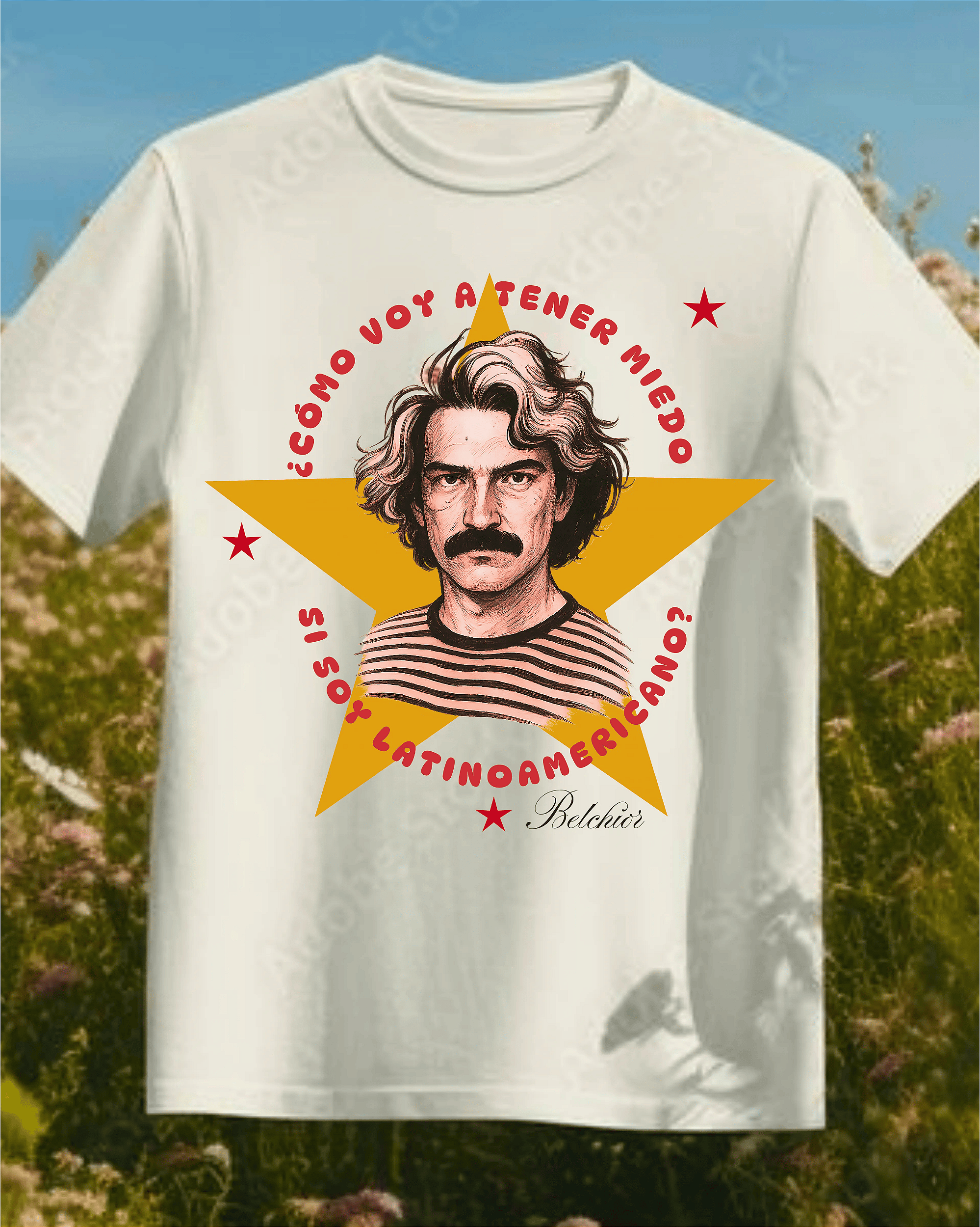 Um grito de orgulho, resistência e identidade estampado no peito. Inspirada na força artística de Belchior e na alma vibrante da América Latina.