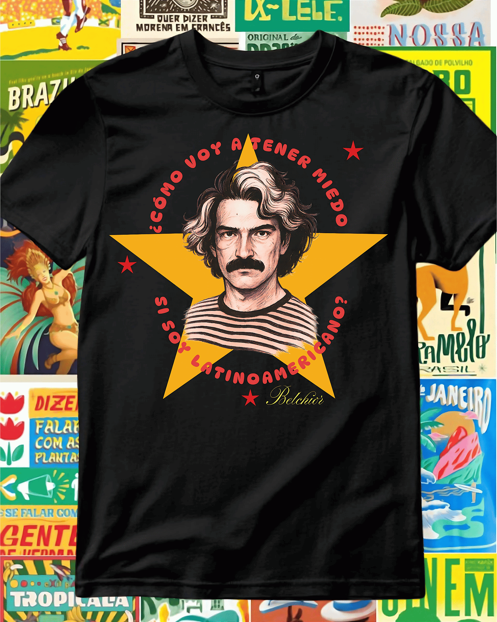 Um grito de orgulho, resistência e identidade estampado no peito. Inspirada na força artística de Belchior e na alma vibrante da América Latina.